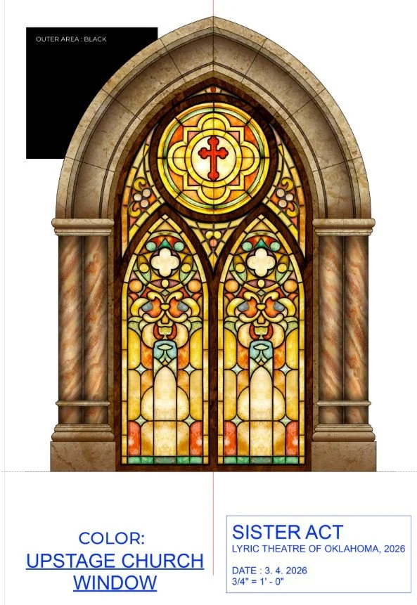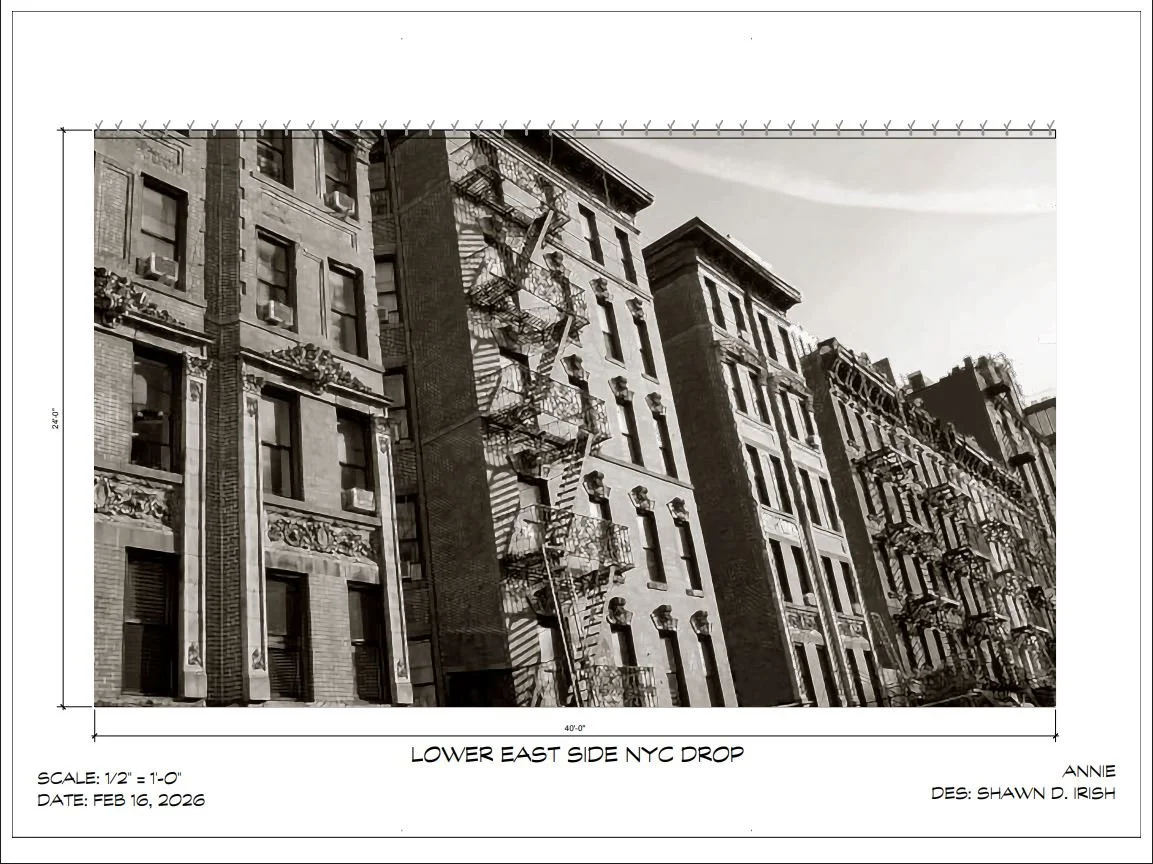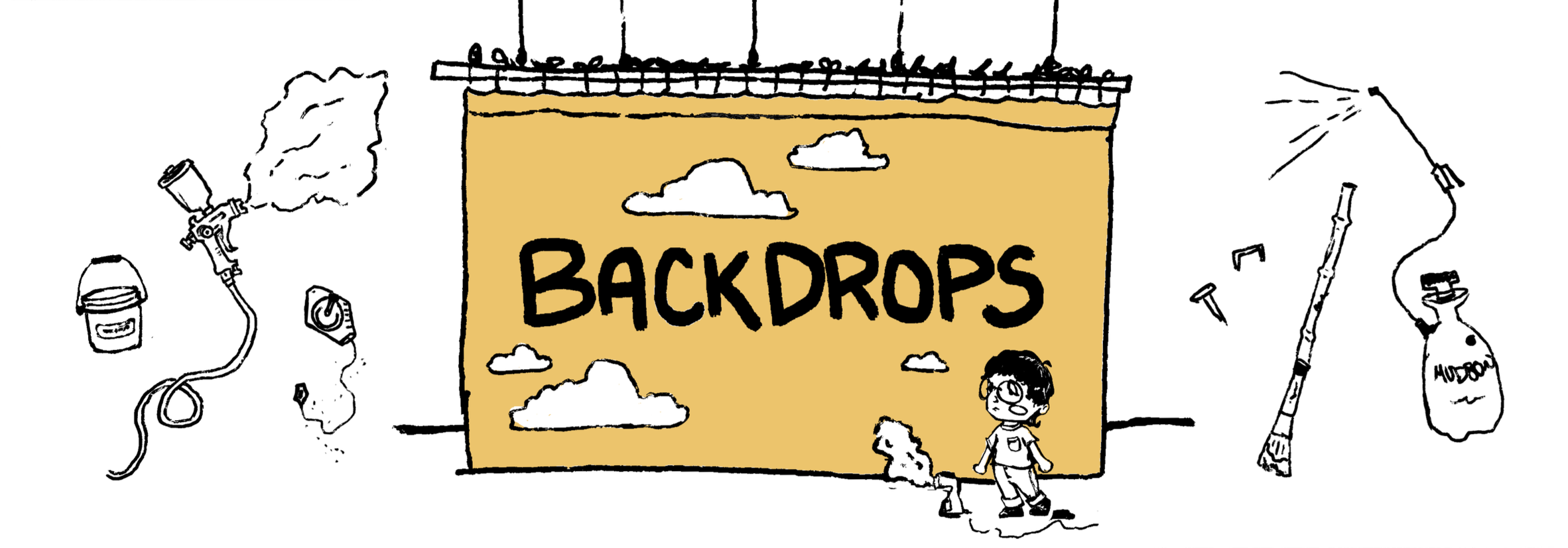 Heavyweight muslin drop, sized with thinned Rosco Off Broadway white, and painted with thinned Off Broadway paint.