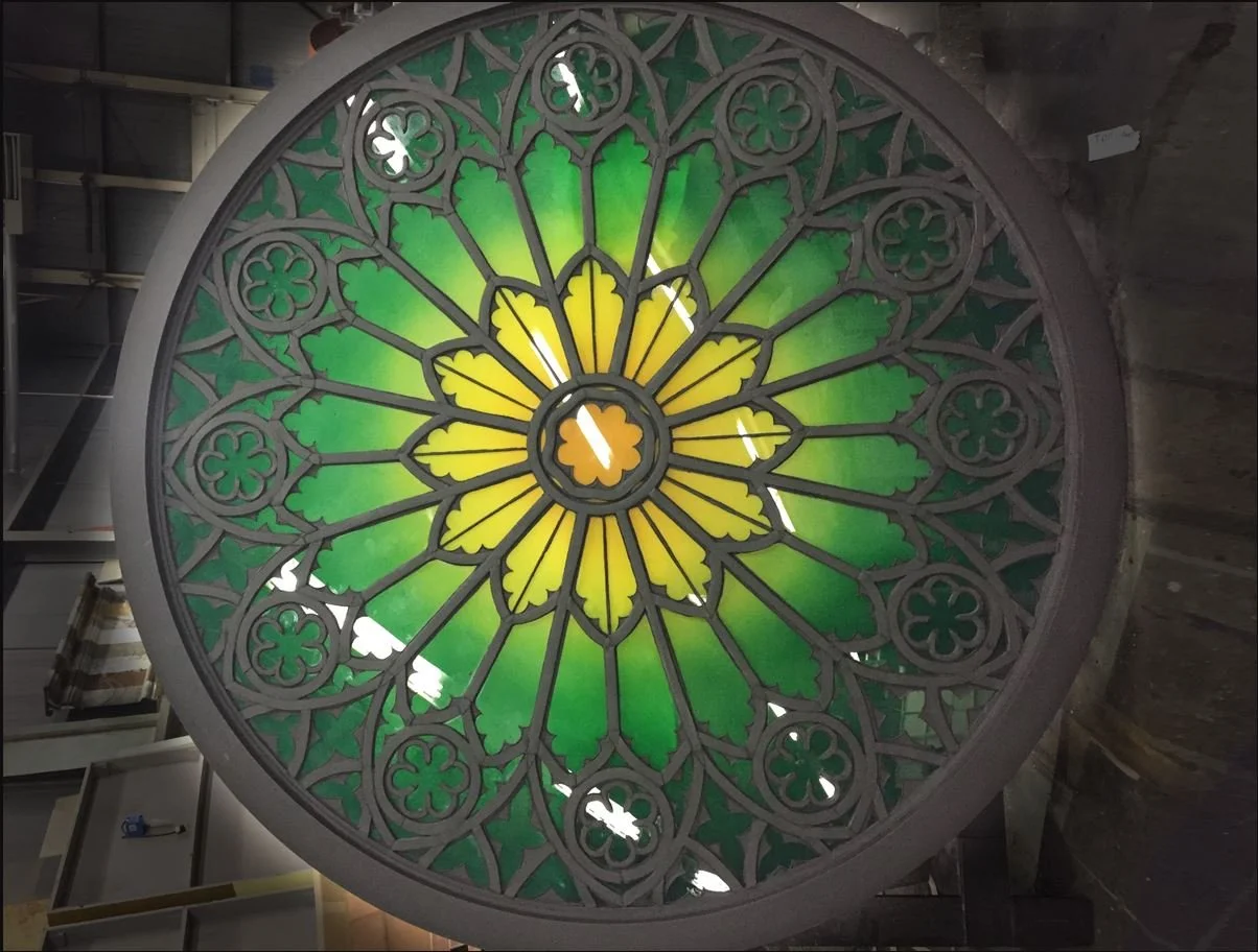 Stained glass is beautiful because of how it plays with light. The following should be considered in deciding how best to make your “glass” collaborate with stage lighting.
